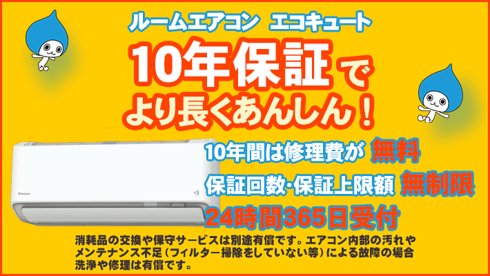最長10年間は修理費が無料